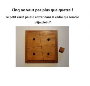 Les Casses Têtes et autres Curiosités : le serpent, les trois T, difficile, la croix du menuisier, le petit serpent, casse tête deux pièces, les cubes diaboliques, casse tête de la cage, cube magique 4pièces, tangram, triangle de pentosa, l’anneau et la croix, pièces bicolores, les 4 T, curieux engrenage, la tour, la fusée, la boule prisonnière, le rectangle magique, jeux de pointes, saute mouton, taquin pour les petits, taquin expert, taquin pour confirmés, taquin à la croix, l’orgue , carré qui disparait, pour les bricoleurs, la croix à reconstruire.